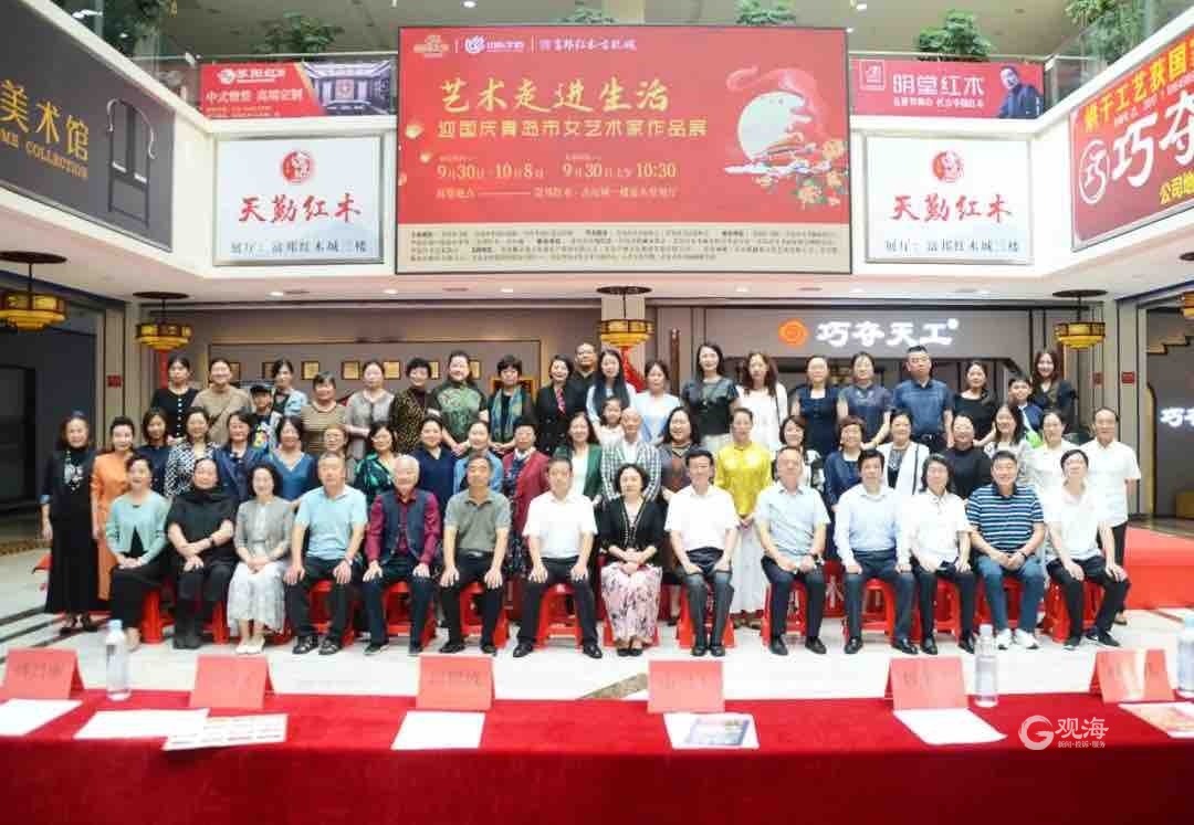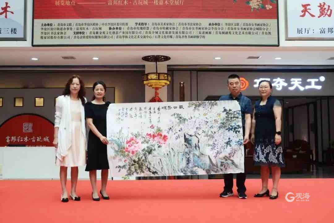 青岛日报社/观海新闻10月1日讯 9月30日,由青岛市文联、青岛市李沧区政协、李沧区委宣传部主办,青岛市美术家协会、青岛市书法家协会学术指导,李沧区文联、青岛市女书画家协会、李沧区沧口街道办事处、富邦红木·古玩城承办,青岛市玫瑰联盟、青岛市收藏家协会、青岛市女书画家协会李沧分会、青岛市女书画家协会城阳分会、李沧区书法家协会协办的“艺术走进生活——迎国庆青岛市女艺术家作品展”在富邦红木·古玩城开幕。
