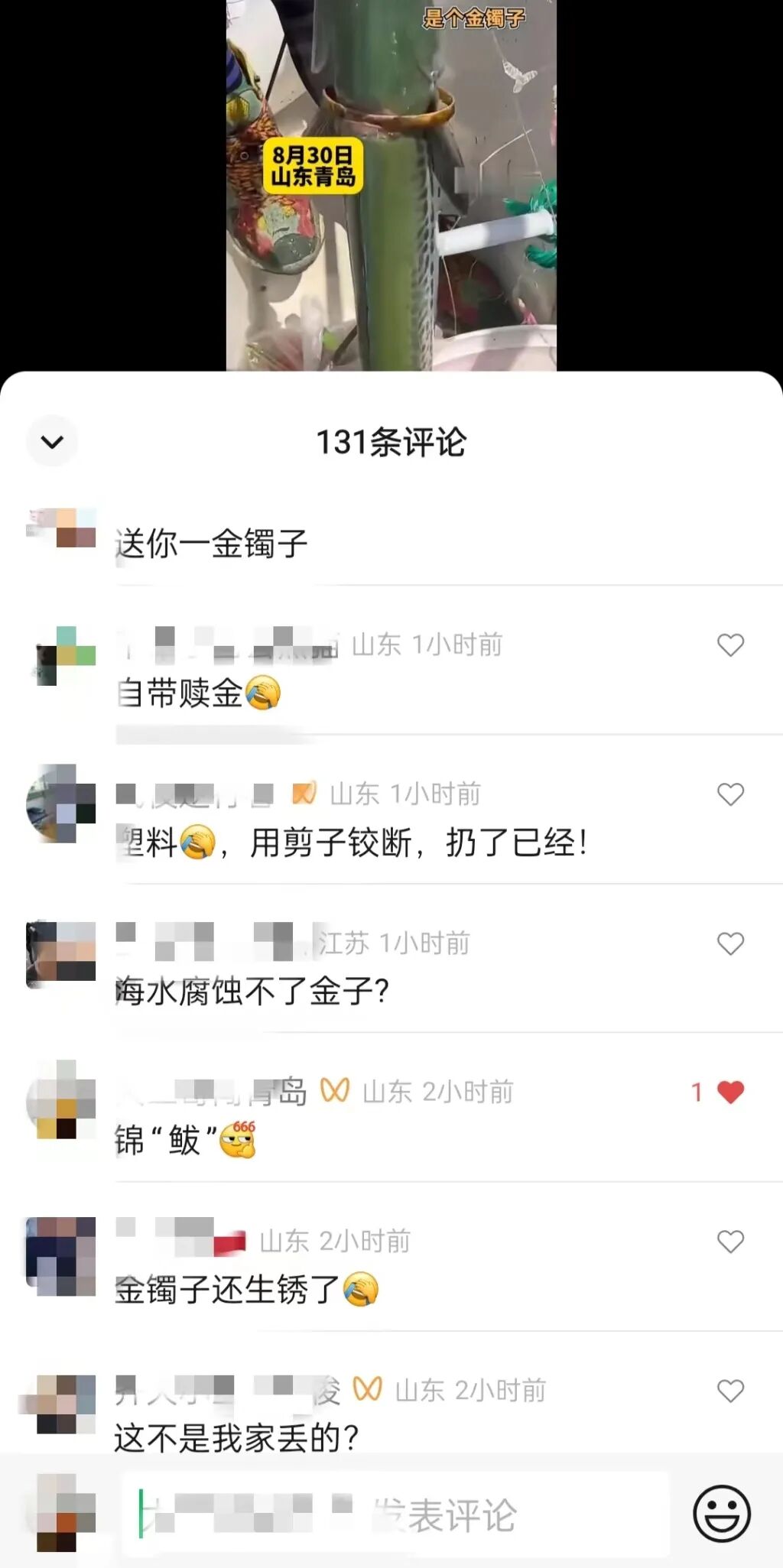 不过也有网友提出质疑,“这么大的金镯子,重量不轻,鱼能带着长这么大,也不容易,确定是金的吗?”“金镯子咋生锈了?”还有网友留言称,“是塑料的,已经扔了。”