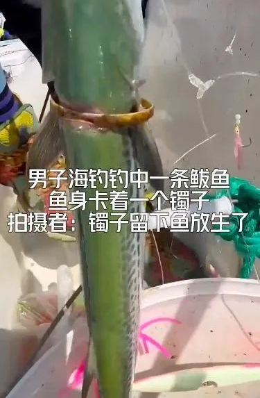 钓到鲅鱼身卡金镯子”的视频