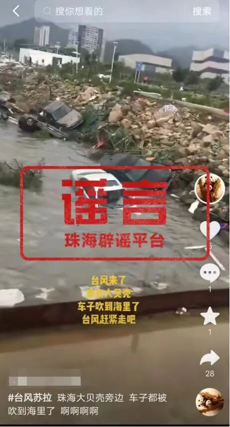 近日,抖音平台流传一则配文为“#台风苏拉,珠海大贝壳旁边,车子都被吹到海里了”的视频,视频显示数辆小轿车在珠海博物馆附近被水淹没。