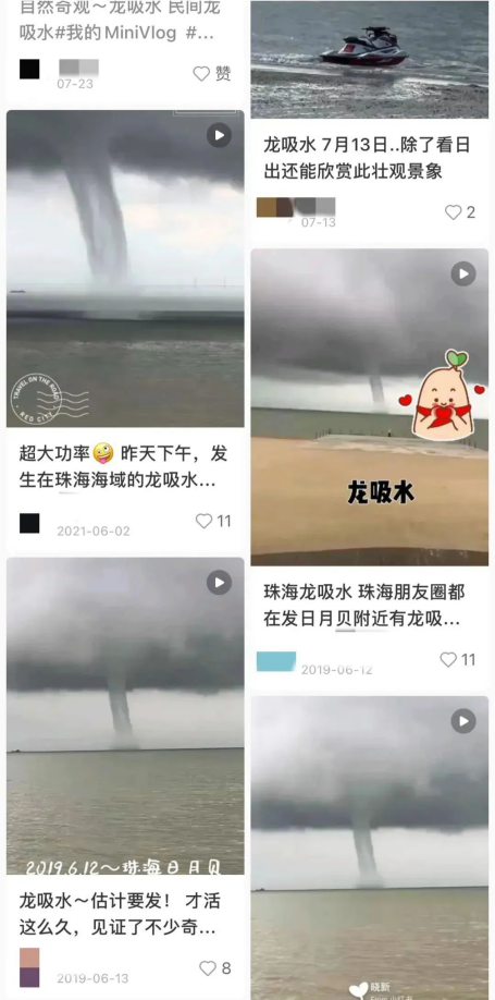 从2019年到今年7月也有不少珠海网友分享看到了“龙吸水”的壮观景象。