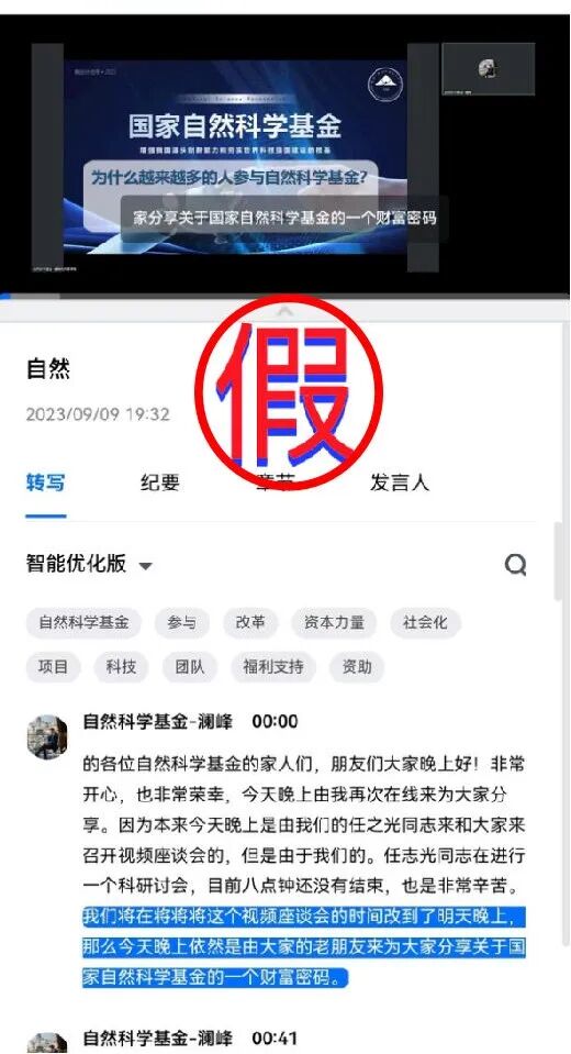 但近日自然科学基金委陆续又收到群众举报,不法分子仍通过变换APP下载网址,召开声称有自然科学基金委工作人员到会宣讲的分享会等方式进行虚假宣传推广,欺诈诱导社会公众参与投资,企图行骗牟利。这一非法行为严重侵犯了社会公众合法权益,损害了国家自然科学基金的公信力。为此,我单位再次严正声明如下: