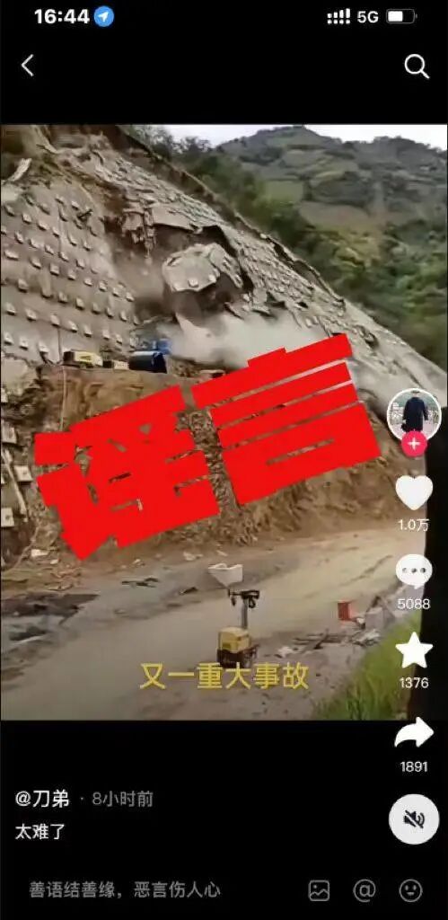 “凉山一处水泥护坡发生垮塌”为谣言