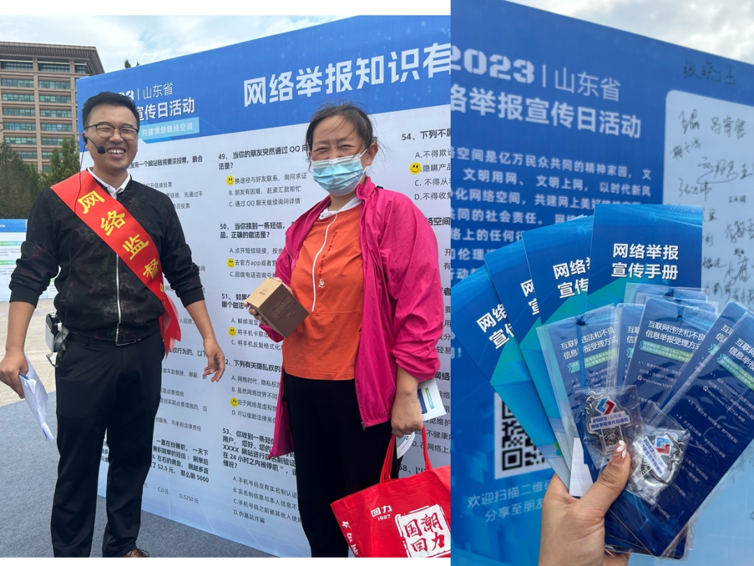 秋高气爽,周末的济南泉城广场人流如织。9月23日上午,2023年山东省网络举报宣传日活动在这里举办。