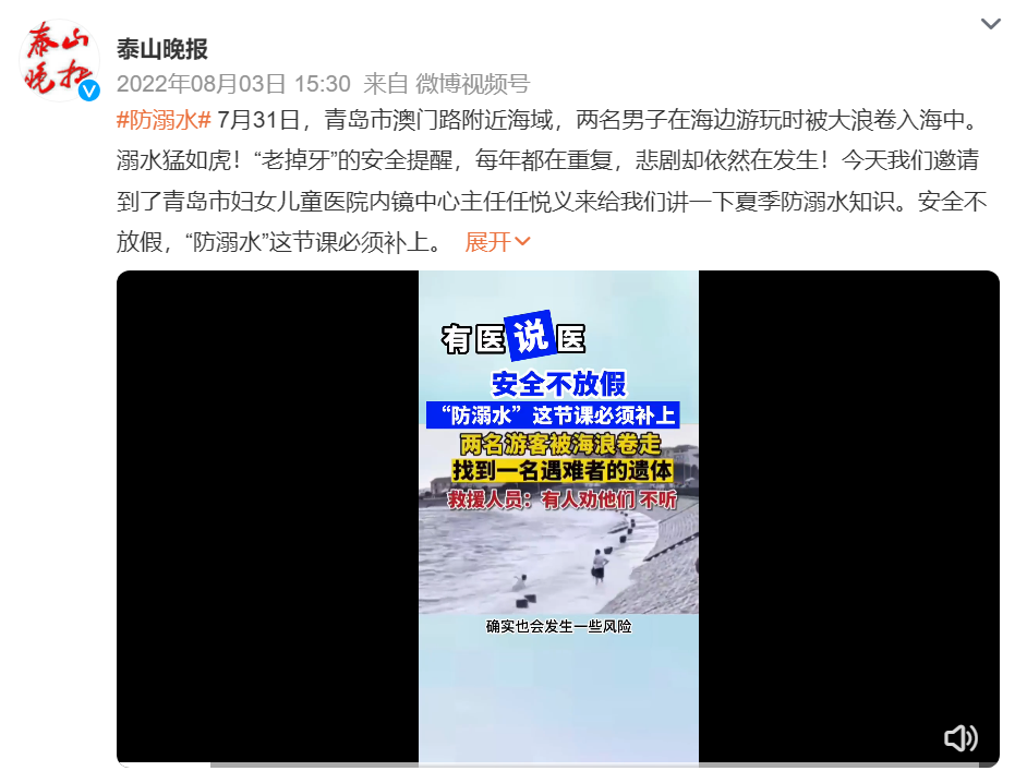 此外,很多少年儿童玩水的时候会呼朋引伴,而家长看着人挺多,觉得不必跟着,但这样隐患很大,因为一方面人多胆壮,会让孩子们敢于挑战更有风险的地方,另一方面小伙伴之间常常会有同伴压力,一些水性不太好的孩子怕被嘲笑胆小,往往会硬着头皮下水,这也可能导致危险。