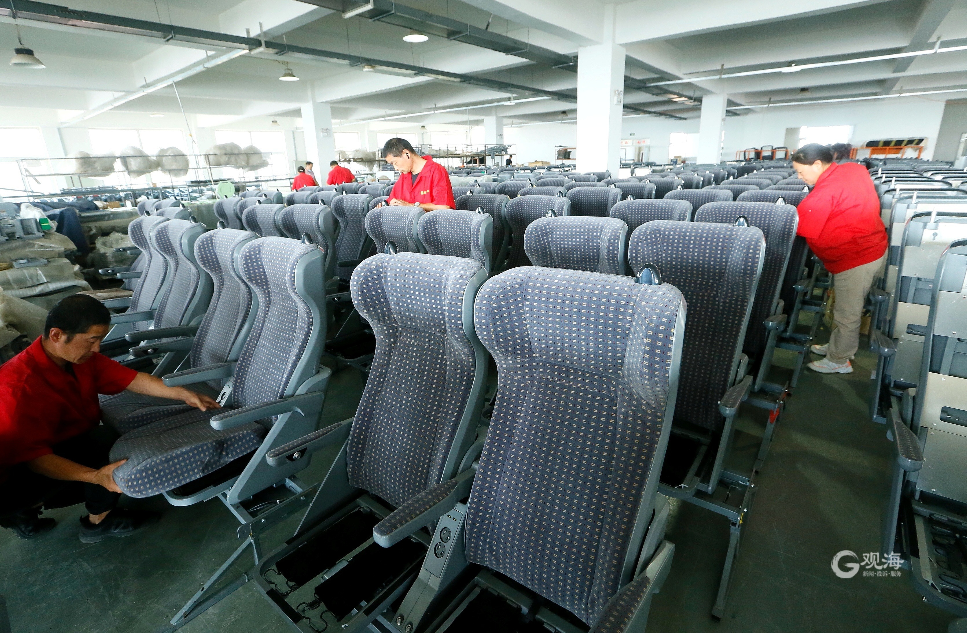10月9日,青岛美莱轨道股份有限公司的工人在生产出口到海外市场的动车座椅。