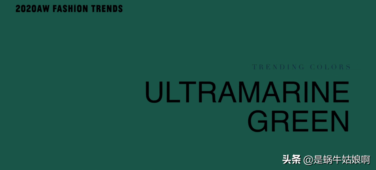 绿色系在这两年非常火,各种绿有点霸屏的意思。前年的牛油果绿、去年的鼠尾草绿、今年的薄荷绿等等啦,然后今年秋冬又出现一个群青绿。