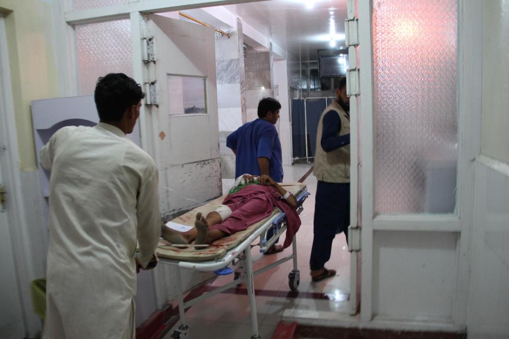 ↑8月2日,在阿富汗东部楠格哈尔省首府贾拉拉巴德市,袭击事件伤者被送到医院接受治疗。(新华社发)