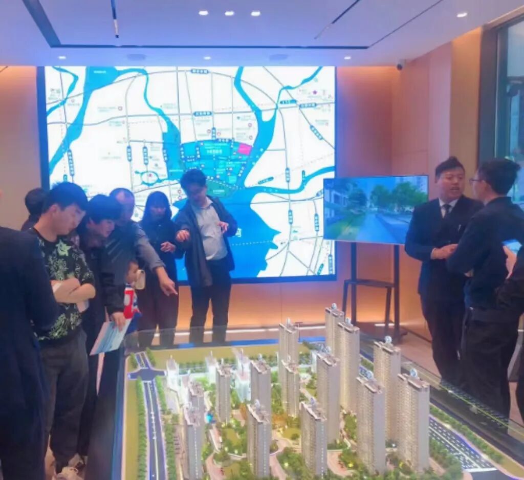 2023年10月25日,城阳区中欧国际滨江悦营销中心,市民正在看房。李鹏飞 摄