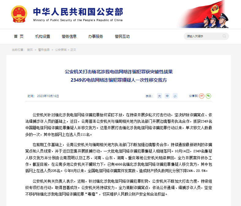 公安机关打击缅北涉我电信网络诈骗犯罪获突破性战果
