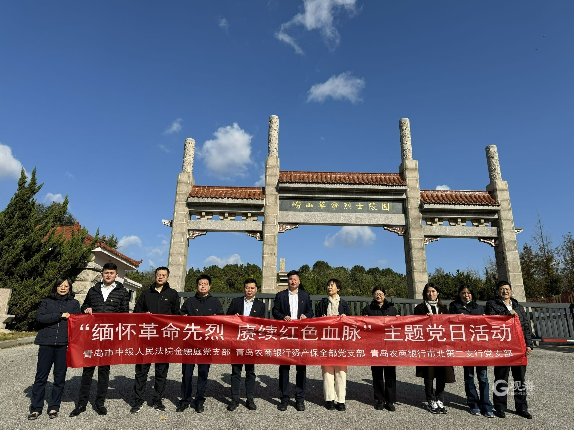 青岛日报/青岛观/青报网11月10日讯 为进一步培育和践行社会主义核心价值观,传承和弘扬中华民族传统文化,缅怀先烈、慎终追远。11月10日,青岛中院金融庭及青岛农商银行资产保全部、市北第二支行部分党员干部前往崂山区革命烈士陵园开展“缅怀革命先烈 赓续红色血脉”主题党日活动。