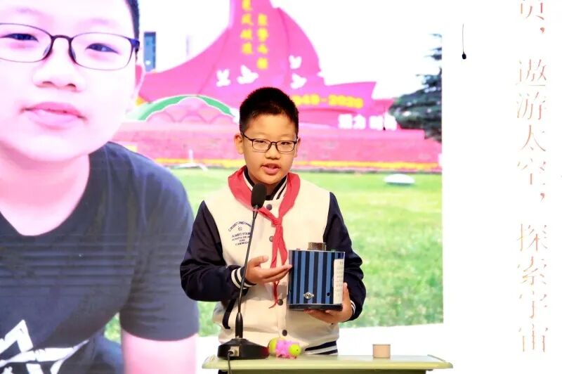 青岛枣山小学一直非常重视科技教育。会上,五年级的王云甲同学为大家介绍了科技作品——火箭发射器,这是他在今年的“学校创新科技节”中的获奖作品。来自三年级的双胞胎赵昱桐、赵昱鑫带来了精彩编程展示,他们将“垃圾分类知识”和英语单词学习寓于游戏,学有乐趣。