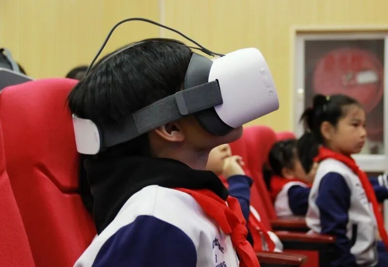 仪式上,来自青岛市博物馆的陈大伟老师从社会科学的角度,为同学们作了博物馆知识介绍,同学们被深深吸引并积极与互动。青岛市博物馆的工作人员还通过VR辅助,引导同学们了解了琅琊台的传说。