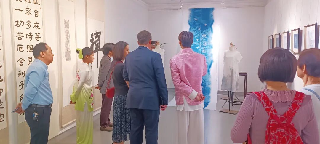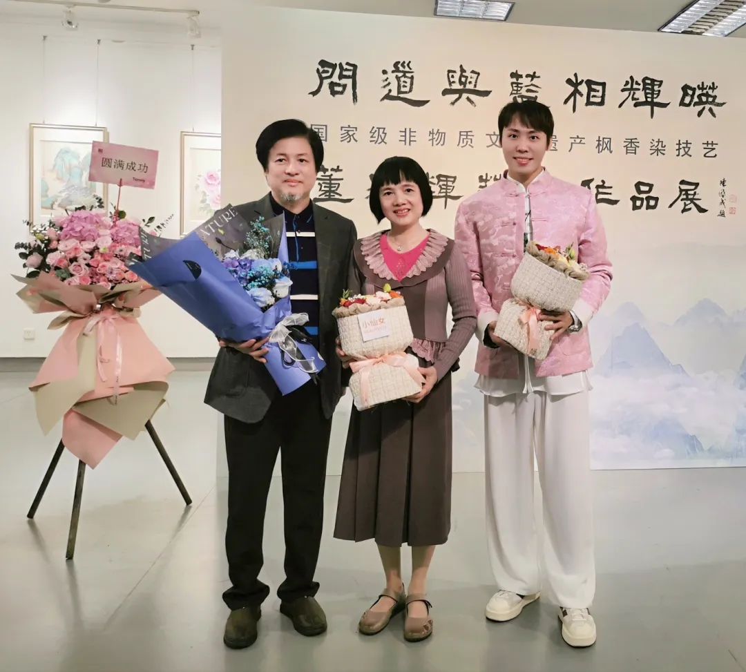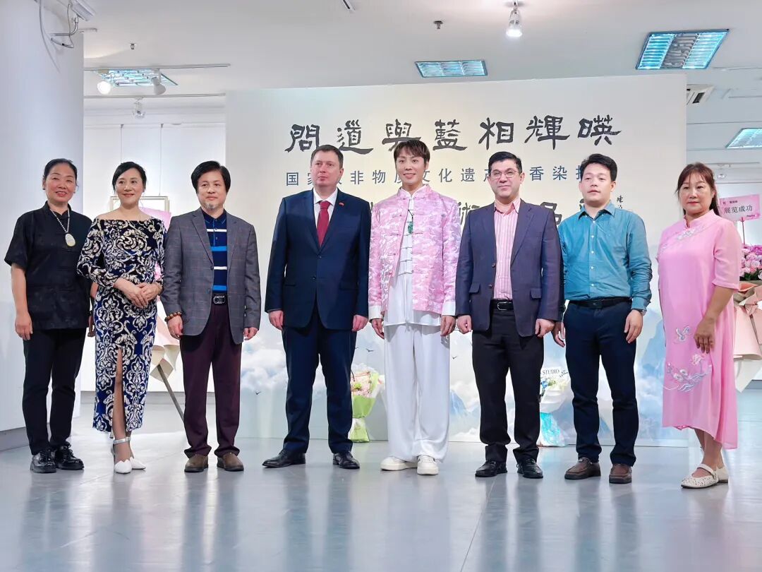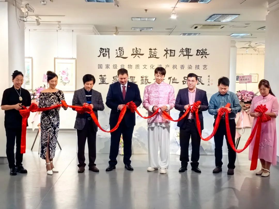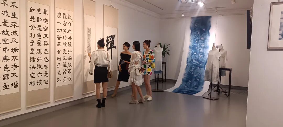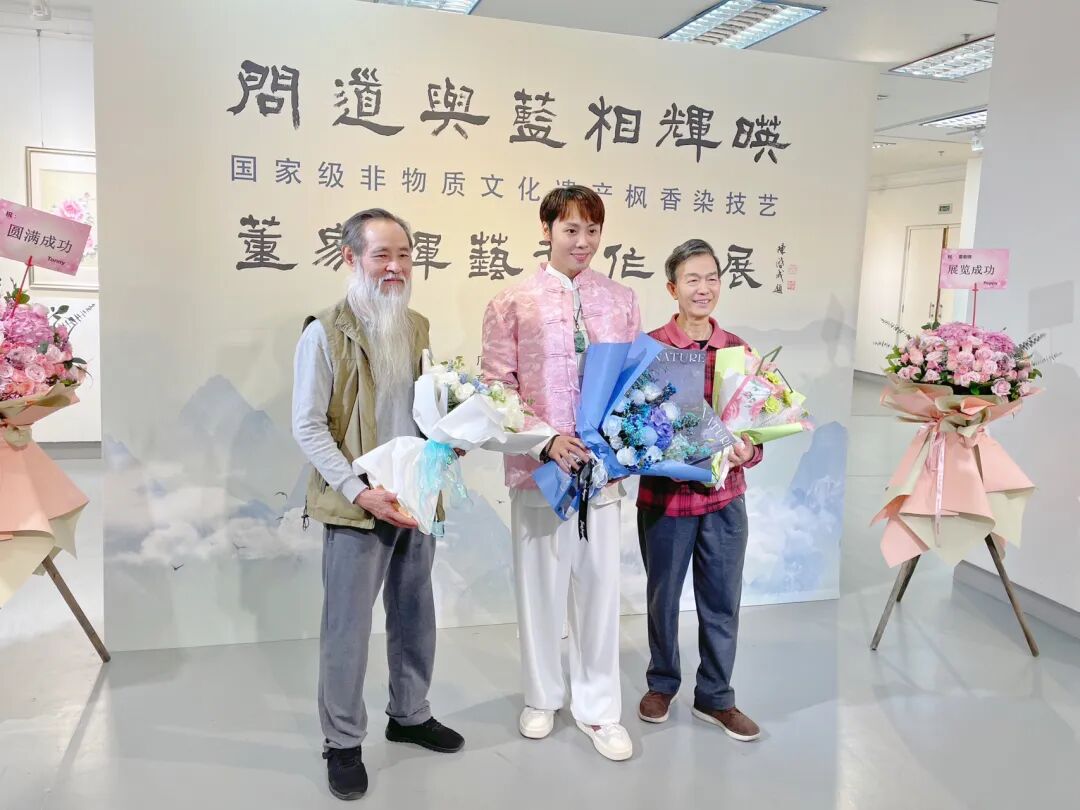 如今,“问道与蓝相辉映”董家辉艺术作品展在亚洲地区进行巡回展览,艺术创作人借由展览的形式,让古代圣贤儒、释、道的哲学思想与国家级非物质文化遗产枫香染技艺相互融合,注入岭南画派意境元素,通过创新设计,结合书画艺术,共同探索书道与蓝染之美。