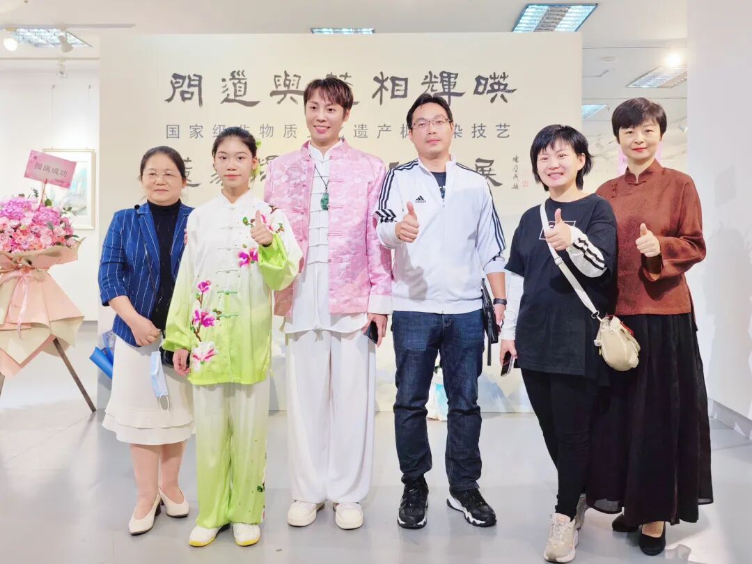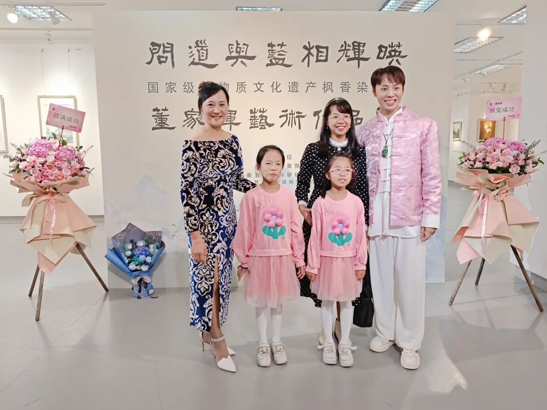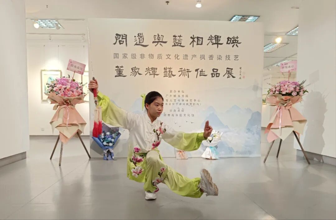 此外,展览展出董家辉以岭南画派风格的书画结合国家非物质文化遗产枫香染技艺所创作的全新作品,包括5米长卷作品《蝶恋图》,宋代风格花鸟系列,服饰系列,其中《莲池仕女图》是根据其母亲在1996年所设计制作的玻璃画中的人物造型进行二次创作,并运用董家辉所创新创造的“挂金技法”融入非遗枫香染技艺,全新风貌的《莲池仕女图》首次在本次展览中正式亮相,吸引了行业专家、书画爱好者、广大市民的青睐。