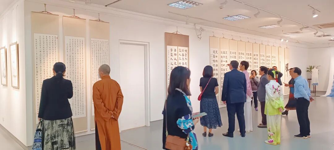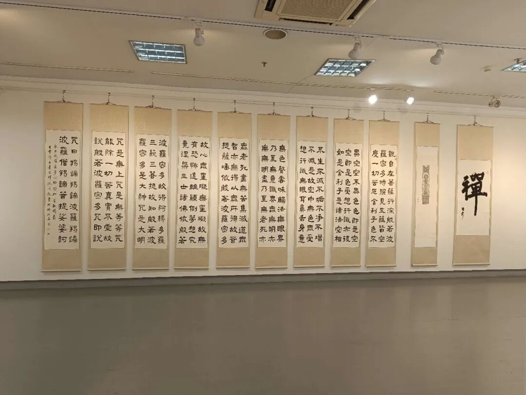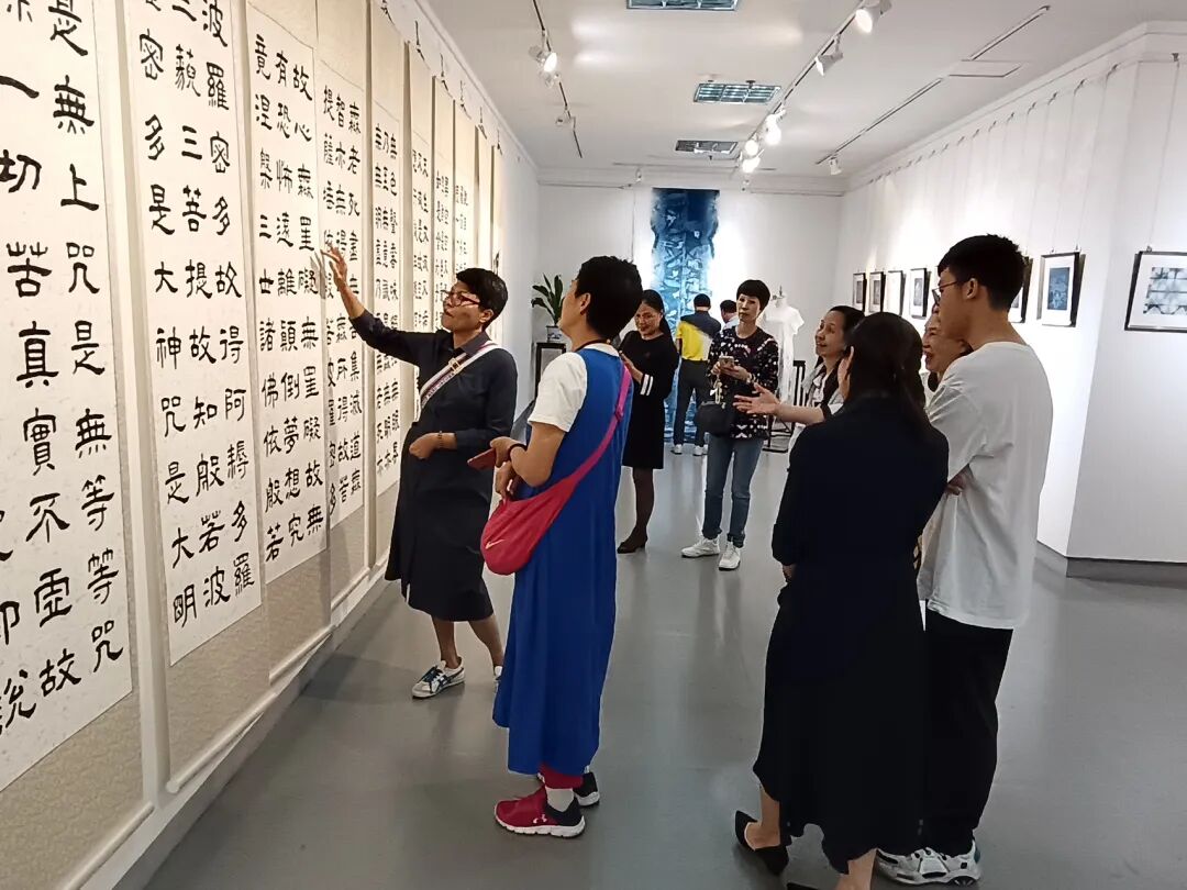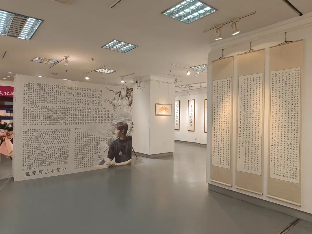 据悉,本次展览展出由广州城市美院院长董家辉所创作的国家级非物质文化遗产枫香染系列、书法系列、中国画系列、油画系列近百幅精选作品。其中,展览展出了多件书法巨幅作品,包括长达9米的隶书《般若波罗密多心经》(九屏),《清代观音石像》拓印,爨宝子《道德经》(四屏),汉简《道德经》,隶书《道德经》(两屏),楷书《道德经》(三屏)等。