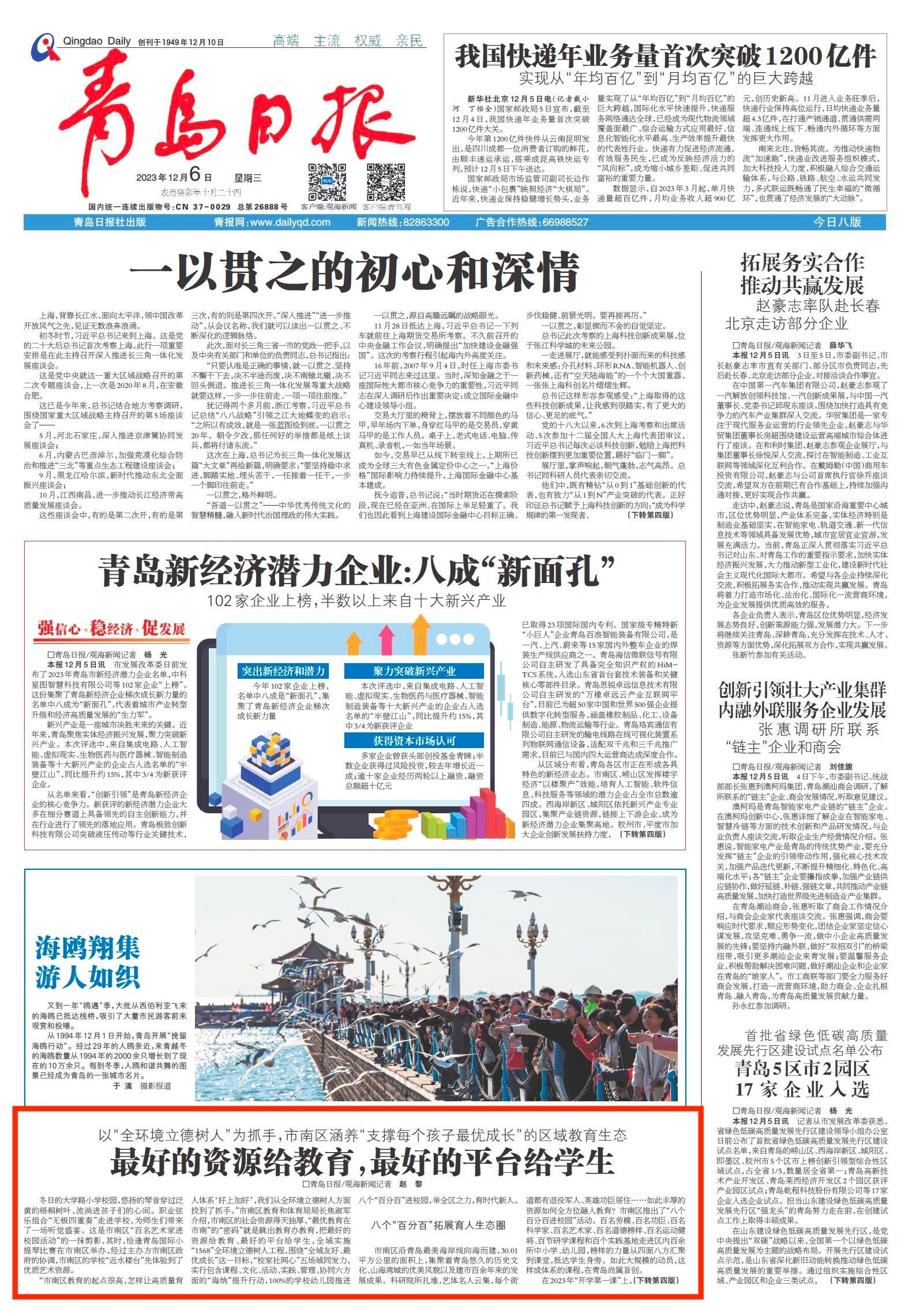 走心、用情、有爱,让市南区涵养了“支撑每个孩子最优成长”的区域教育生态,也推动了市南区教育高位发展。(青岛日报/观海新闻记者 赵黎)