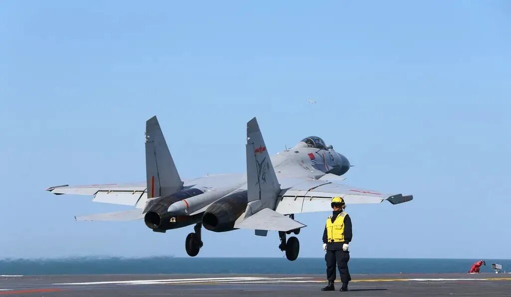 11月上旬,海军航空大学一名飞行学员驾驶歼-15舰载战斗机在辽宁舰成功实施阻拦着舰。