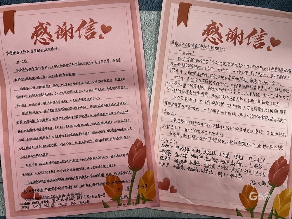 “后来增设了13路公交车,我们把它称为‘丹小专线’”“在你们的不懈努力下,现在我们放学路上有了很多改变,放学到车站几乎不用等车了,很快就会有一辆公交车接我们回家”……感谢信里,学生们用稚嫩的话语充满深情地讲述着如今放学后的便利出行,多次向公交驾驶员和公交工作人员致谢。