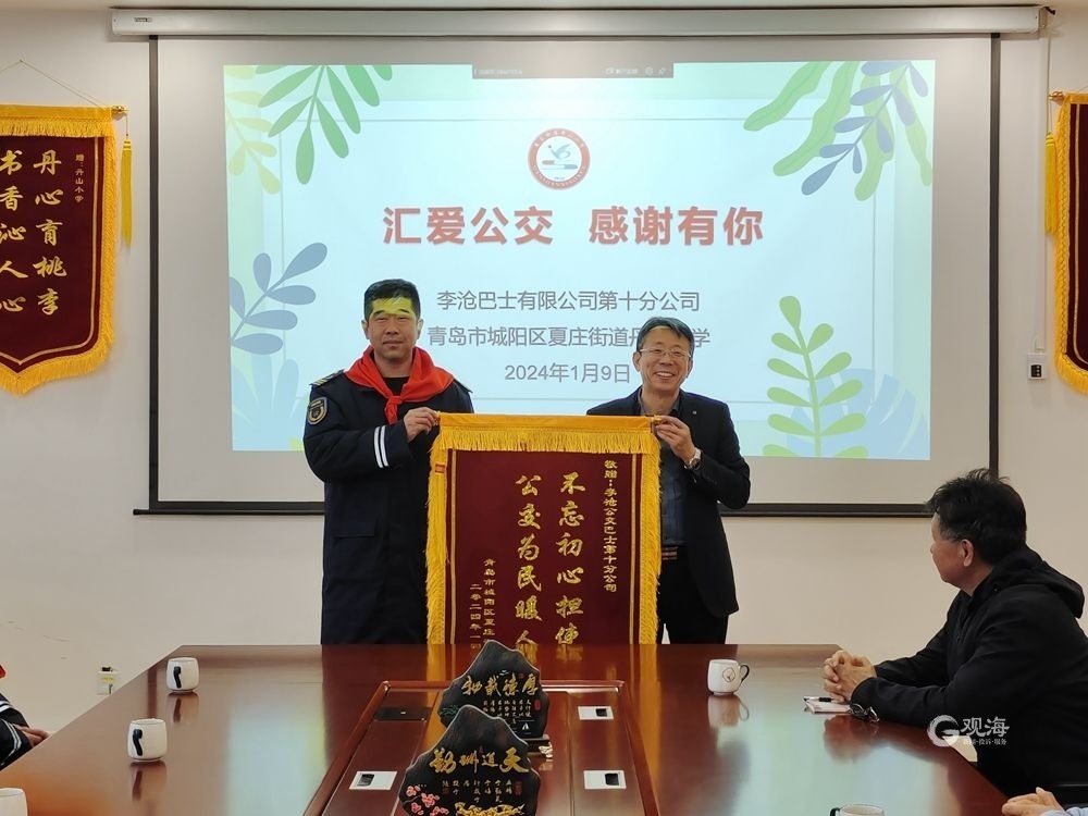 青岛日报社/观海新闻1月11日讯 1月9日,青岛市丹山小学师生送出了两封联名感谢信和一面锦旗。信中,42位学生向青岛城运控股公交集团李沧巴士第十分公司公交驾驶员、公交工作人员表达了感激之情。锦旗上,校方用“不忘初心担使命 公交为民暖人心”十四个字,传递出了浓浓谢意。1月10日,记者来到丹山小学,了解到了感谢信背后的故事。