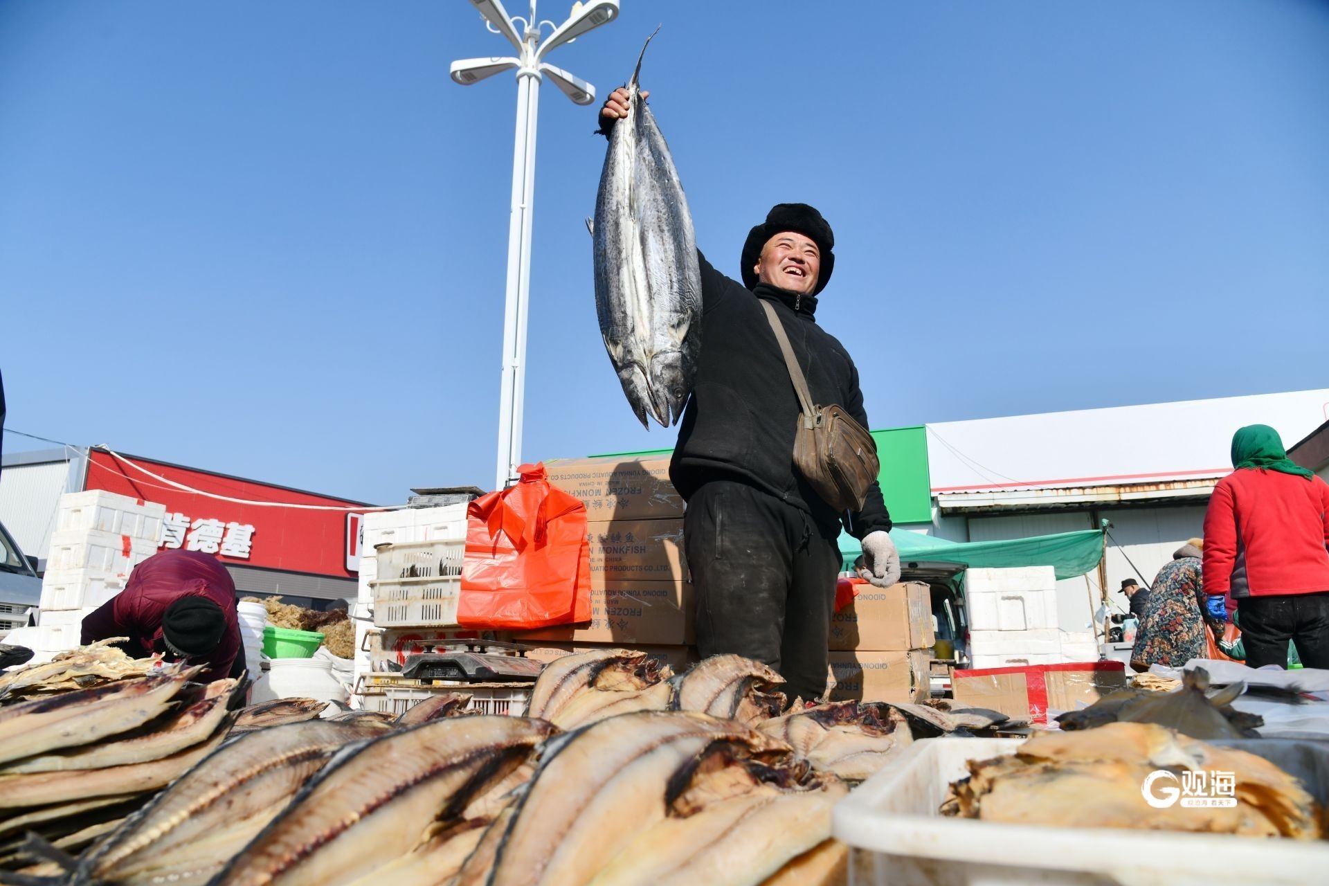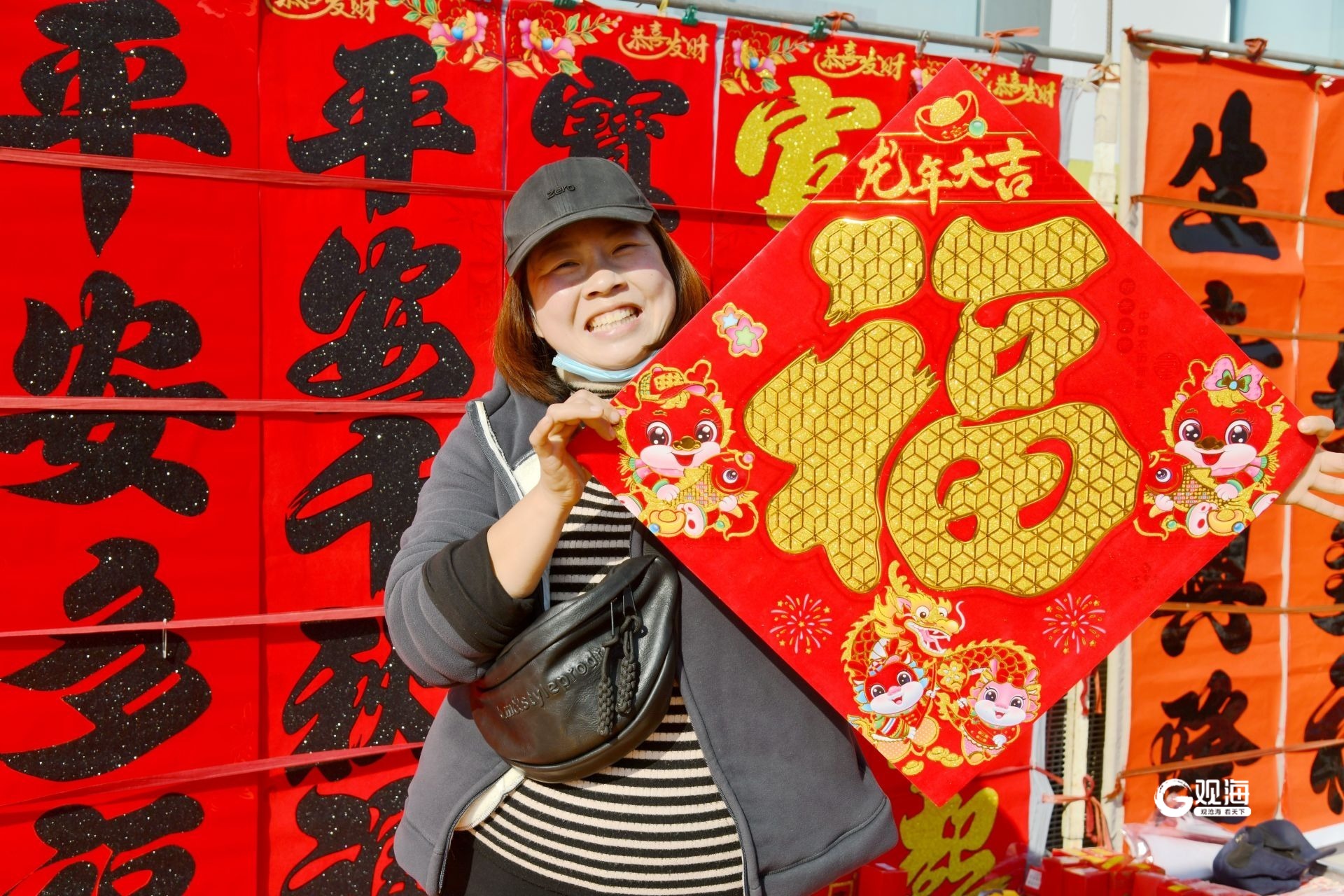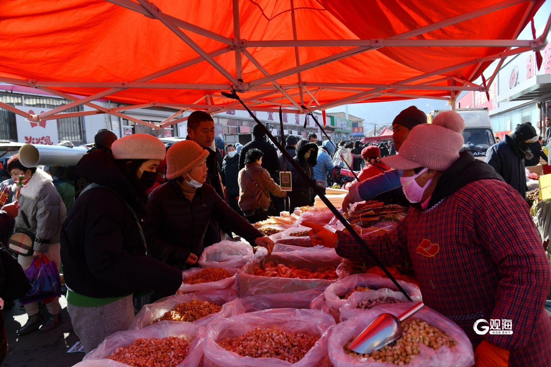 观海新闻记者在现场看到,海胆、海蛎子、海星、蛏子等小海鲜品类繁多,面包鱼、鳗鳞鱼、鲅鱼等甜晒鱼最受消费者欢迎。火红的棉袄、充满喜庆的福字和春联都是市民热选的年货。