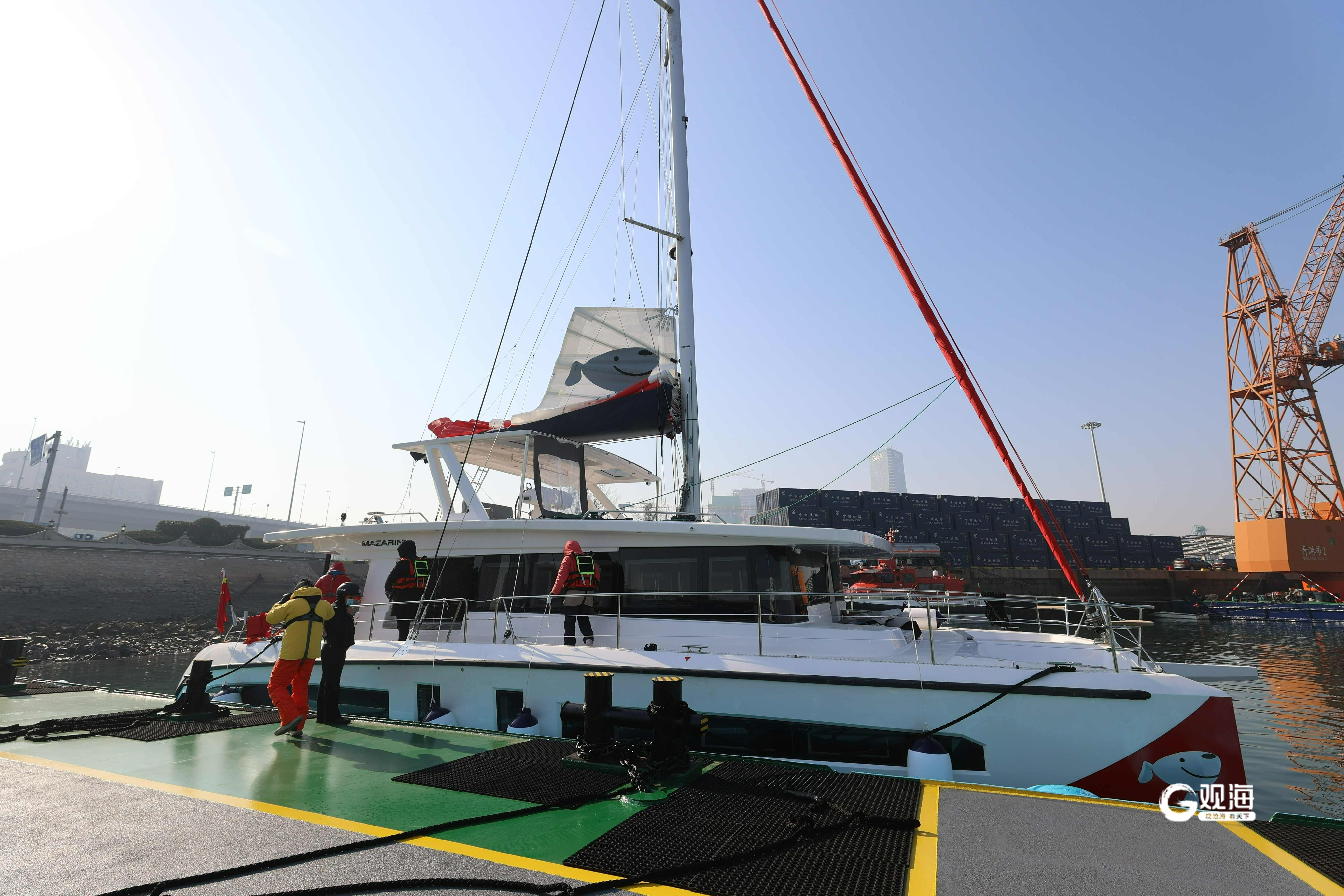 据了解,“OCEAN BOOK(海洋之书)”双体帆船船主权先生为帆船私人环球旅行网红博主,互联网关注较高,帆船驶离青岛港后,他将和妻子一起开始为期5年的环球旅行。