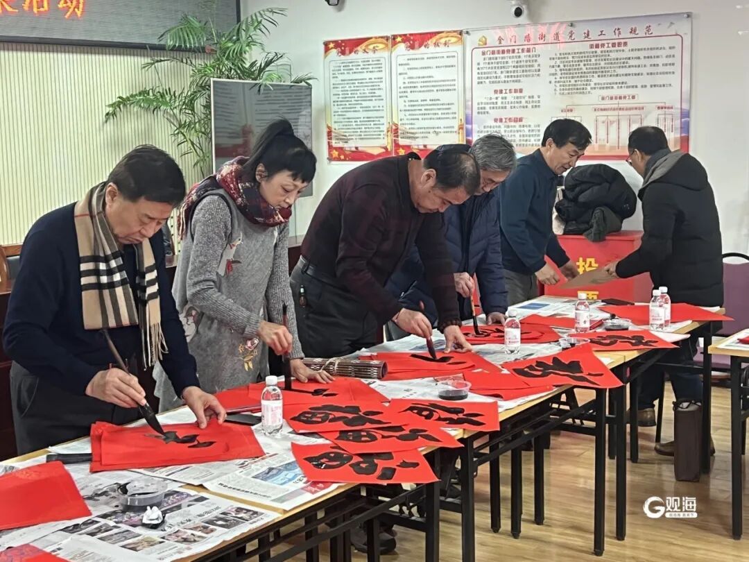 1月30日上午,市南区金门路街道办事处的活动室内翰墨飘香,年味十足,欢声笑语不断……“新年集福 福到万家”线下书法征集活动在这里暖心举行。来自青岛市书法家协会老书法家工作委员会、市南区书法家协会的十余位书法家与老年书法爱好者们齐聚一堂,挥毫泼墨,为岛城空巢老人们送上迎新春的美好祝福。