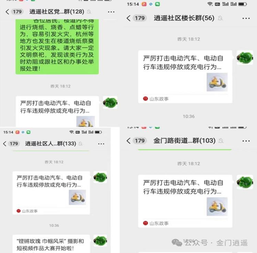 逍遥社区通过群发公告、张贴宣传栏、入户宣传等多种方式宣传电动车消防安全常识,讲解电动车上楼充电危害,并现场纠正、整治电动车进楼停放、不规范充电等危险行为,培育“人人注重安全、共同维护安全”的良好风尚。