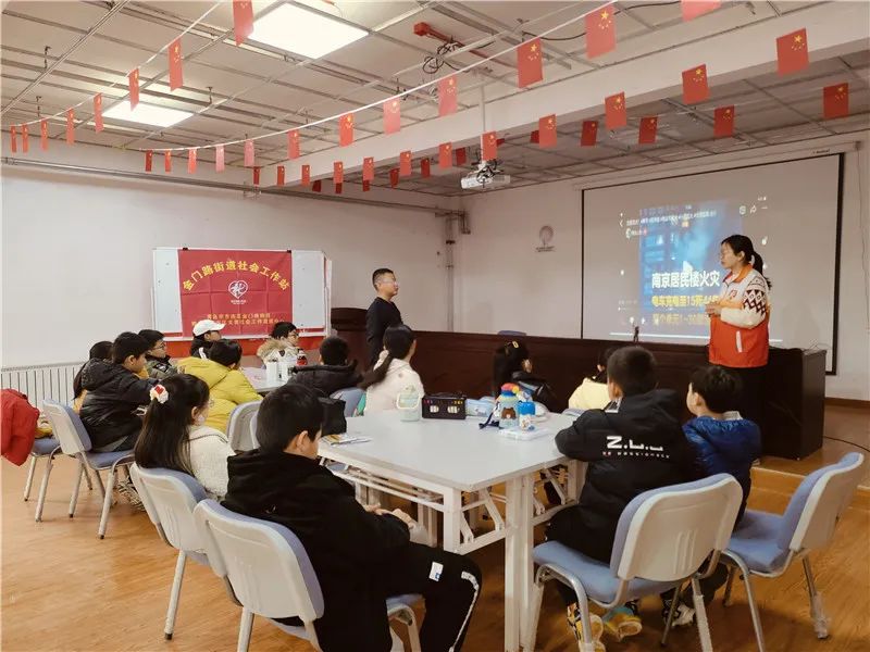 活动伊始,驻站社工张云芳就雷锋日以及雷锋精神进行简要介绍,并通过“红绿灯”小游戏活跃了现场氛围,调动了孩子们的参与积极性。随后,社工带领大家共同走进电动车安全知识小课堂,“让我们一起开动脑筋想一想,我们如何安全使用电动车?”“一定要通过正规渠道购买合格产品。”“不能整夜、长时间充电。”社工围绕“电动车火灾事故频发的原因、电动车安全使用知识、火灾逃生技巧”三大主题,通过案例展示、知识讲解、现场模拟、手绘宣传材料等形式与孩子们互动交流,引导其积极思考,循序渐进提升其安全意识。