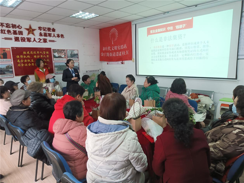 辖区东营银行的业务经理隋鑫茹为大家带来了“远离非法集资,防范金融诈骗”宣传,并现场发放了宣传手册,从专业角度跟大家面对面讲解防范非法集资相关知识。特别叮嘱大家不要轻易相信陌生人和陌生电话,讲述诈骗的危害和常见类型,凡是涉及金钱的问题一定要谨慎,不要轻易上当等。活动有效增强了大家对非法集资的辨别能力和防范意识,认识到非法集资对家庭、个人和社会的危害性,进一步营造了安定祥和的良好社区氛围。