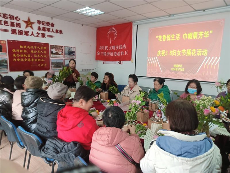 阳春三月,春暖花开。为展现女性魅力,丰富社区妇女的精神文化生活,3月5日下午,在第114个国际“三八”妇女节即将到来之际,金门路街道逍遥社区联合辖区东营银行青岛大尧三路支行举办“花香悦生活,巾帼展芳华”三八妇女节插花活动,进一步深化美德信用建设,提升社区妇女自身素质,在艺术中感受生活、陶冶情操,让浪漫鲜花赋予节日满满的仪式感。