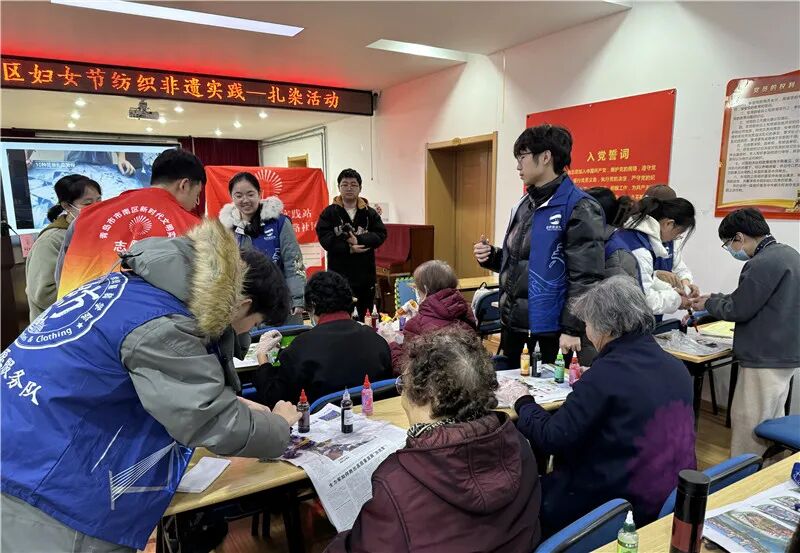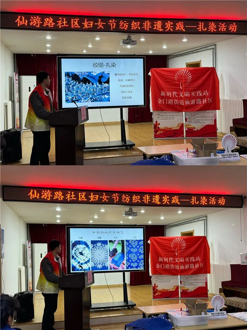 为丰富社区居民精神文化生活,展示女性积极向上的精神面貌与活力,在“三八”国际妇女节来临之际,金门路街道仙游路社区组织开展非遗文化手工扎染活动。
