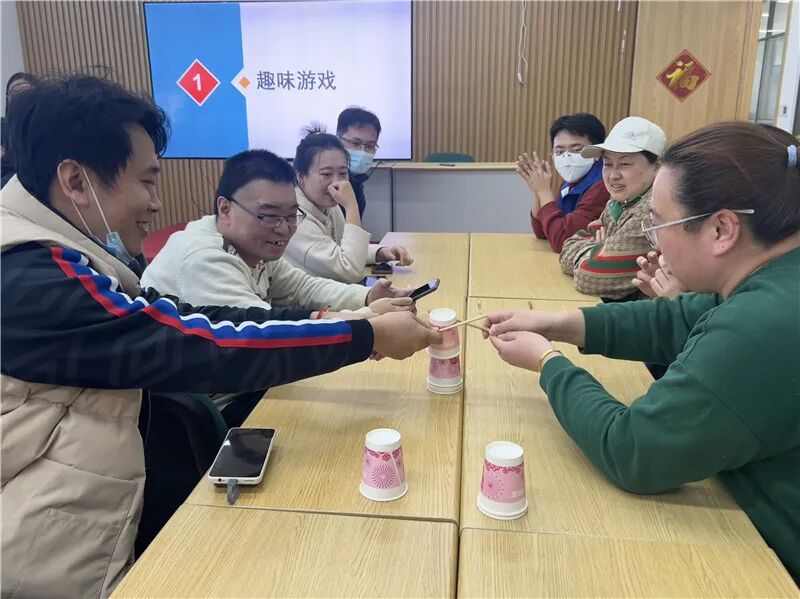 “齐心协力运杯子”“团队emoji猜成语”趣味游戏拉开了活动的序幕,成员们在社工的引导下分成两组,大家以团作战,围绕游戏展开了激烈的比拼,成员们结合游戏规则相互配合,彼此鼓励,在感受游戏乐趣的同时也加强了彼此之间的沟通互动,现场氛围瞬间活跃。