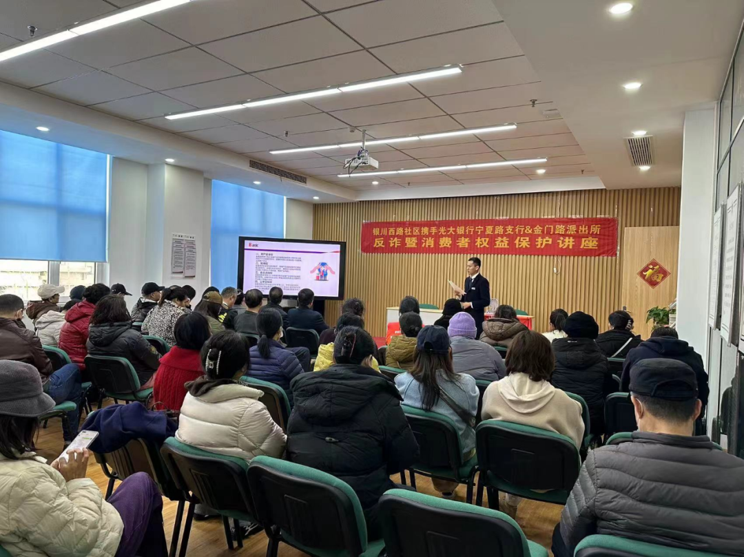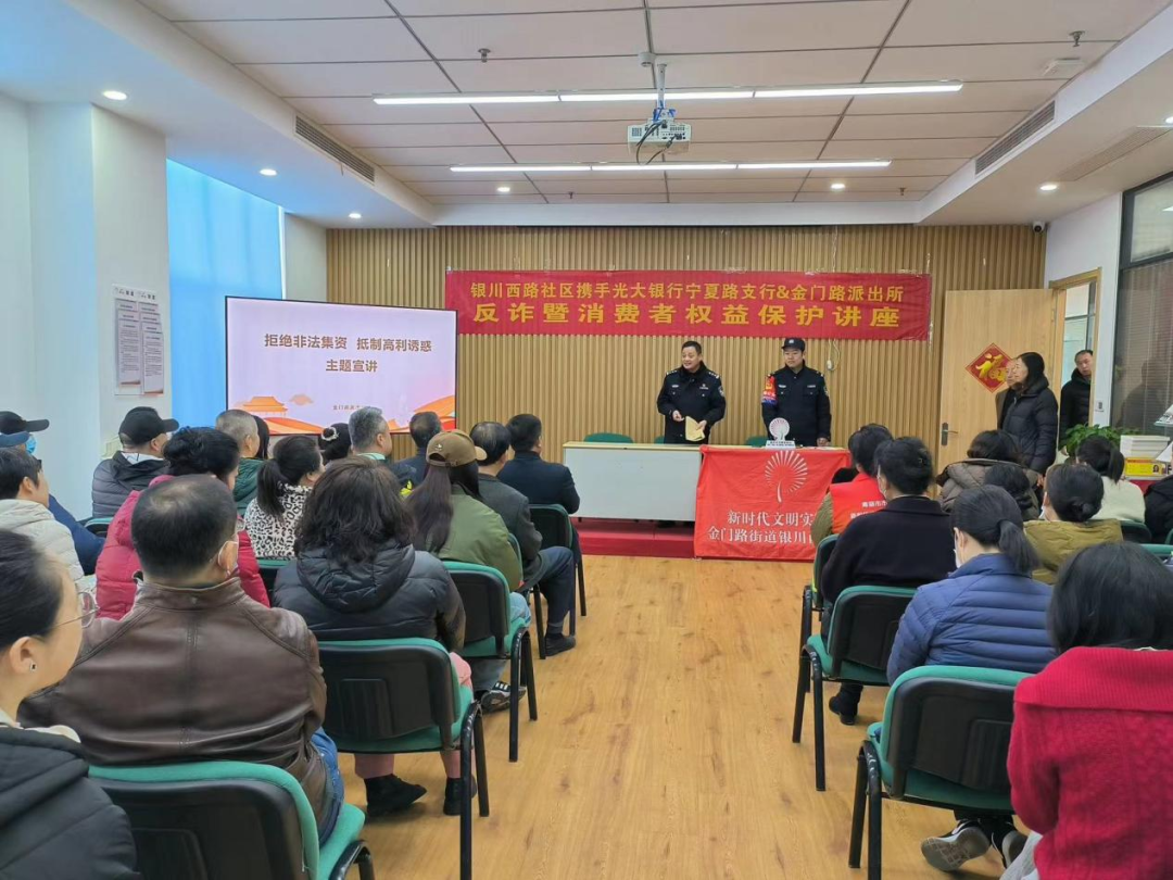为增强辖区居民反诈意识和维权能力,深化美德信用建设工作,3月14日,金门路街道银川西路社区联合金门路派出所、光大银行共同开展了一场反诈防骗暨消费者权益保护讲座。