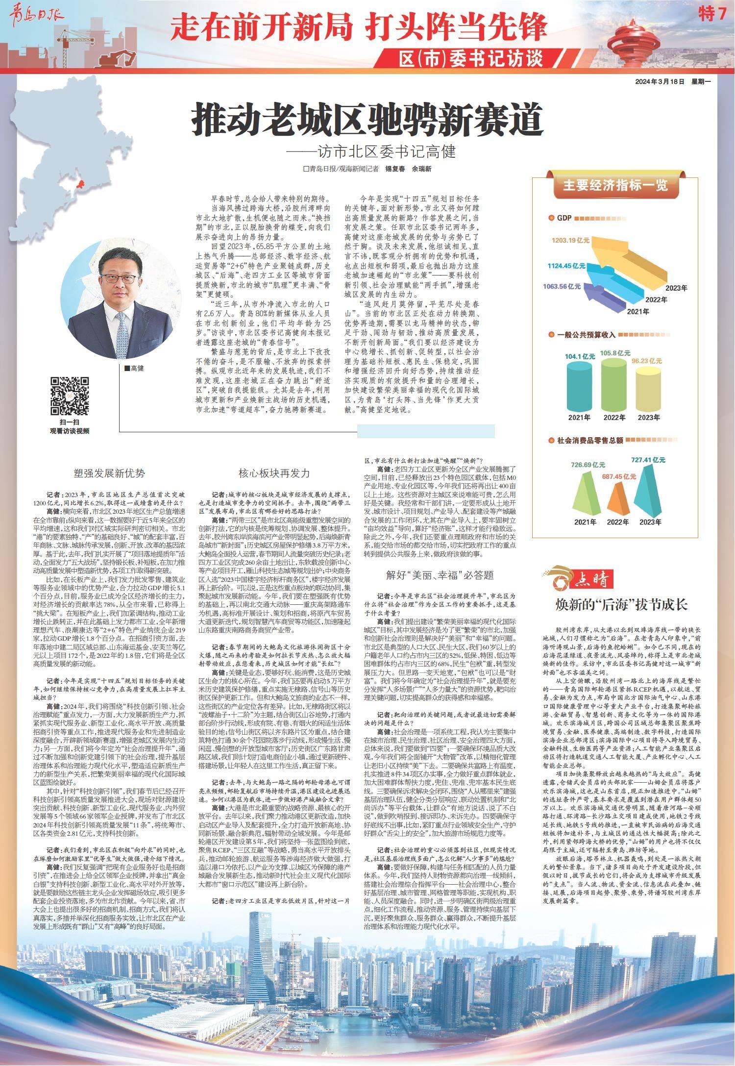 ——市北区大力发展新质生产力,推进现代服务业和先进制造业深度融合,增强老城区发展内生动力。围绕“两带三区”发展布局,启动5万平方米历史建筑保护修缮,实施无棣路、信号山等历史街区保护更新工作;推动港区更新改造,加快启动区产业导入及配套提升。