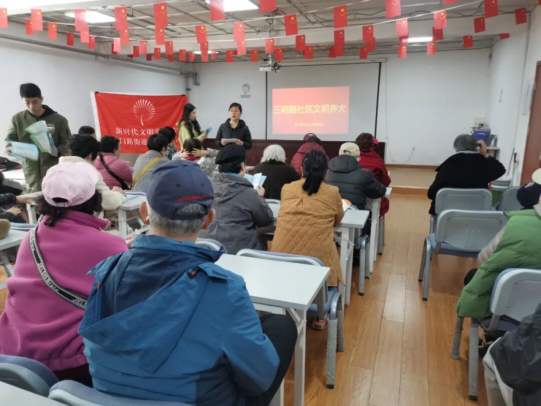 为进一步提高居民依法养犬、文明养犬意识,提升文明素养,营造整洁有序、安全文明的社区氛围,3月20日,金门路街道三明路社区开展“牵紧‘文明绳’,当好‘铲屎官’”文明养犬宣传活动。