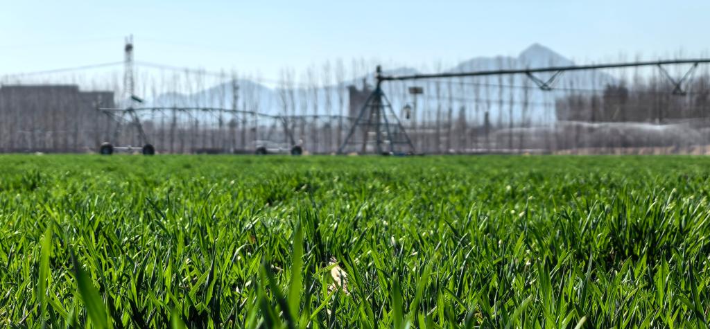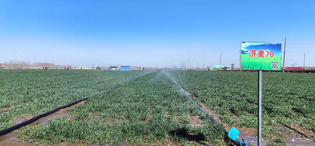 在德州,平原土地鲁望农业发展有限公司的2万余亩农田里,架设了16套水肥一体化指针式喷灌机,手机上的终端控制系统一启动,小麦的返青水便如春雨般均匀洒落;在潍坊,高密市丰俊粮棉蔬菜种植专业合作社管理的2万多亩麦田中,滴灌管道已经铺就,等着为小麦送上返青“第一餐”……