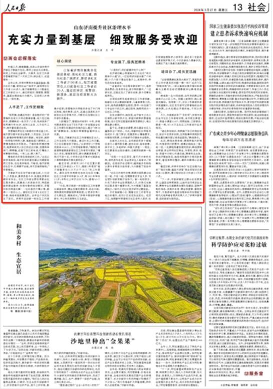 齐鲁网·闪电新闻3月27日讯 今日出版的《人民日报》在第13版以《充实力量到基层 细致服务受欢迎》为题点赞山东济南提升社区治理水平。文章提到,山东省济南市聚焦夯实基层基础、强化社区力量,面向社会广纳贤才,新招录社区工作者2100多人,每万城镇常住人口配备社区工作者近20人,通过抓培训、强管理、提服务,基层治理效能大为提升。