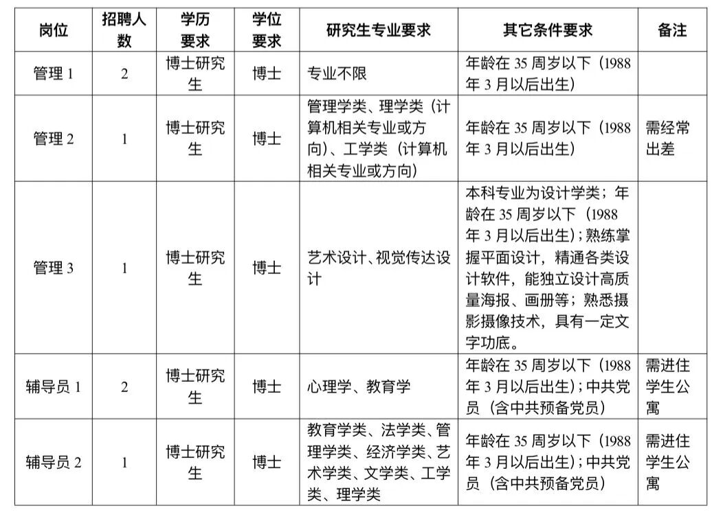 山东女子学院拟面向社会公开招聘博士管理岗、博士辅导员工作人员7名。具体岗位及条件详见《省属事业单位公开招聘工作人员岗位汇总表》。