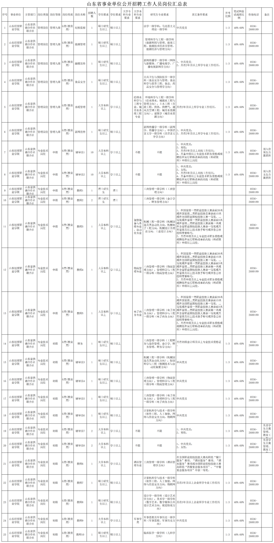 山东经贸职业学院拟面向社会公开招聘工作人员46人。具体岗位及条件详见《省属事业单位公开招聘工作人员岗位汇总表》。