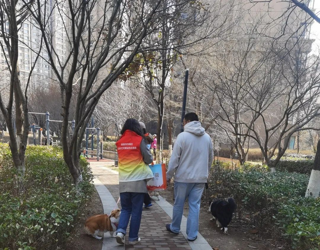 随后,社区工作人员开展户外宣传,走进居民楼院发放文明养犬倡议书,提醒居民们遛狗一定要牵绳,狗粪一定要清理,自觉做到文明养犬,共建和谐社区,也号召居民们在养犬过程中遇到问题时积极与社区联系,共同解决。