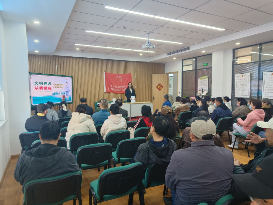 此次活动以“文明养犬知识讲座+户外宣传”形式开展。在讲座中,社区工作人员详细介绍了养犬人应该了解的养犬规定及犬只日常管理问题,如办理养犬证、定期为犬只接种疫苗、限制犬只出入的场所等,呼吁居民依法养犬,牢记爱宠有方,才能与宠相伴;守护文明,才能共享文明,争做文明养犬的榜样。