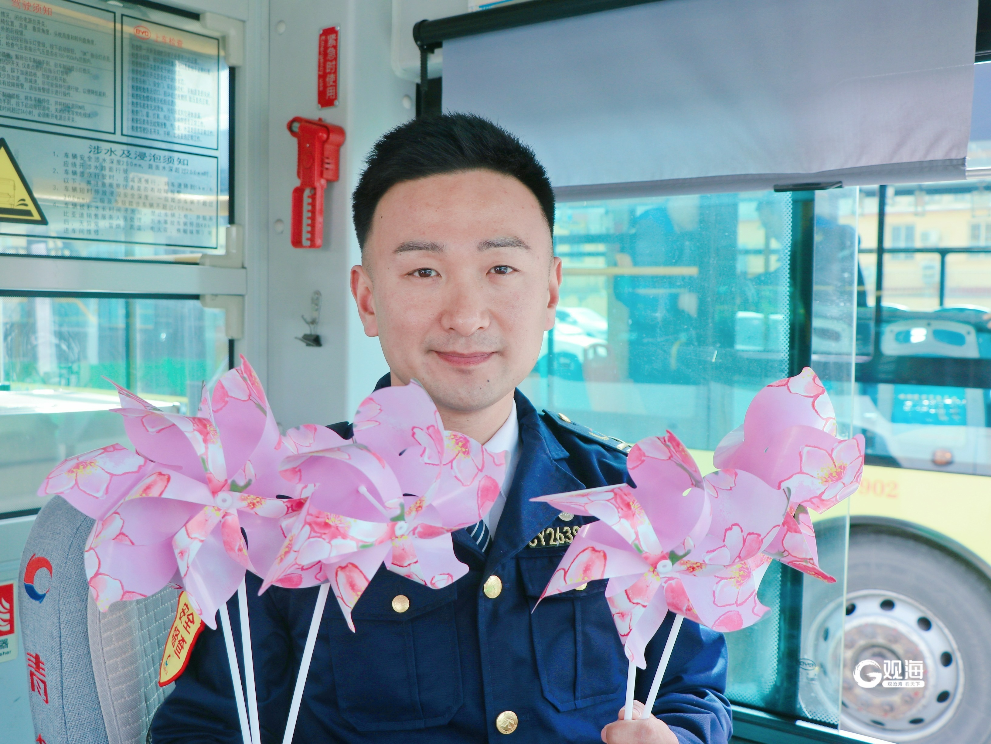 除此之外,董述飞还准备了30多个樱花风车,在运行中送给“小乘客”。谈及打造“春韵巴士”的初衷,董述飞说:“希望能让乘客在忙碌的工作之余放松身心,观赏一路花开,也祝愿大家的生活都能繁花似锦。”