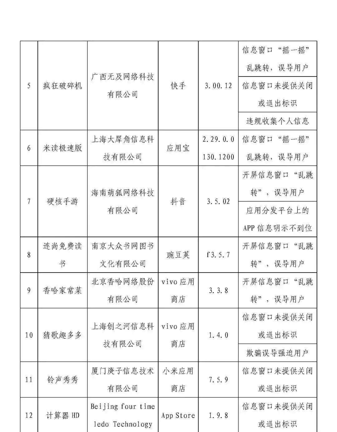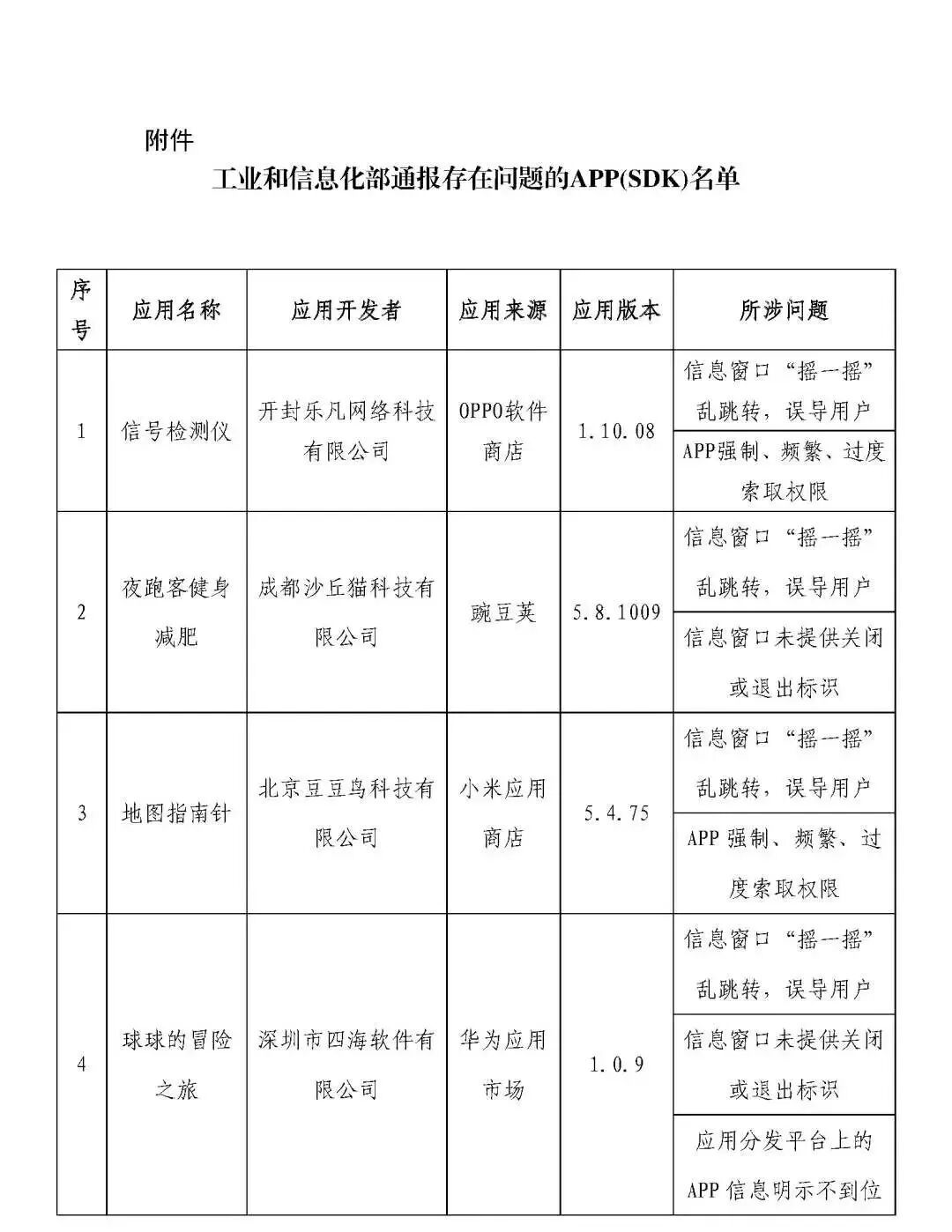 工业和信息化部高度重视用户权益保护工作,依据《个人信息保护法》《网络安全法》《电信条例》《电信和互联网用户个人信息保护规定》等法律法规,持续整治APP侵害用户权益的违规行为。近期,我部组织第三方检测机构对用户反映突出的“摇一摇”乱跳转、信息窗口“关不掉”以及违规收集使用个人信息等问题进行检查,共发现62款APP及SDK存在侵害用户权益行为(详见附件),现予以通报。