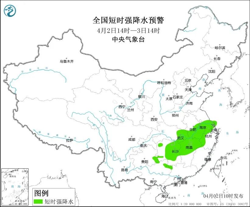 近期,我国多地遭遇强对流天气。4月2日10时,中央气象台继续发布暴雨蓝色预警和强对流天气黄色预警。预计2日14时至3日14时,湖北东南部、安徽中南部、江苏南部、上海、湖南、江西中北部、浙江西部和北部等地部分地区有大到暴雨,其中,江西北部等地局地有大暴雨。上述部分地区伴有短时强降水,局地有雷暴大风或冰雹等强对流天气。
