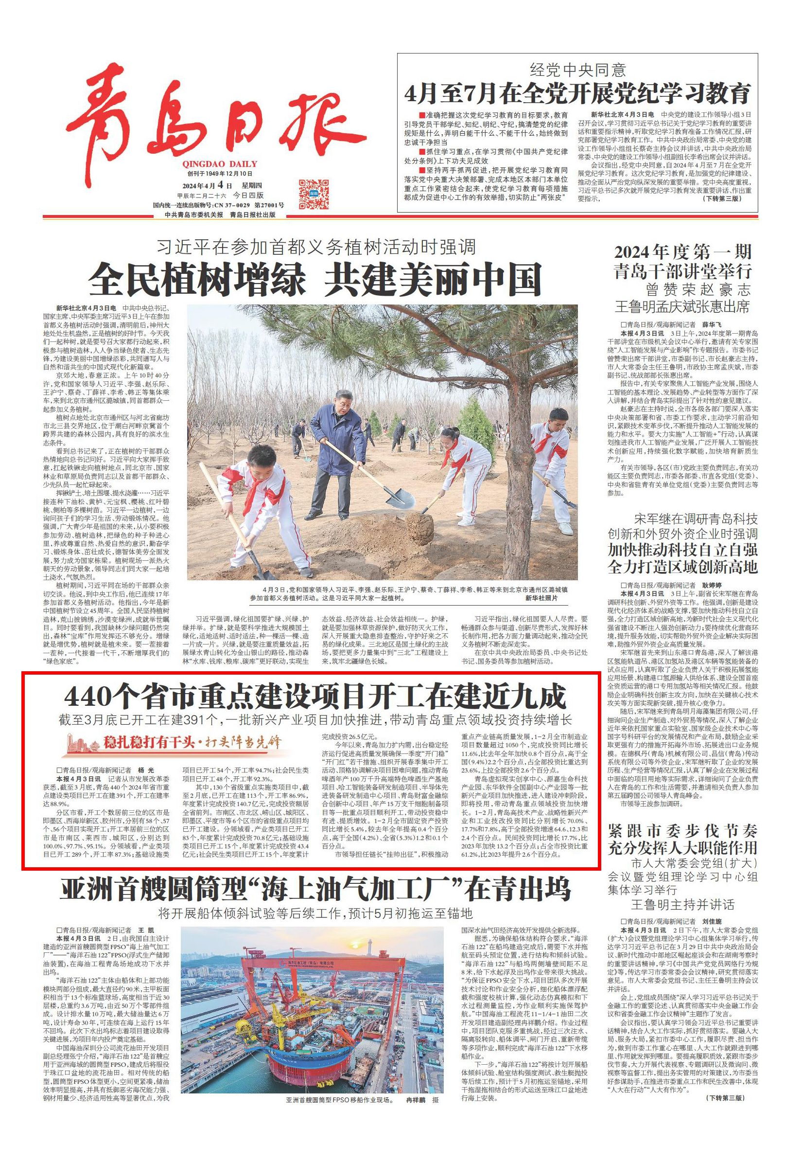 青岛日报社/观海新闻讯 记者从市发展改革委获悉,截至3月底,青岛440个2024年省市重点建设类项目已开工在建391个,开工在建率达88.9%。