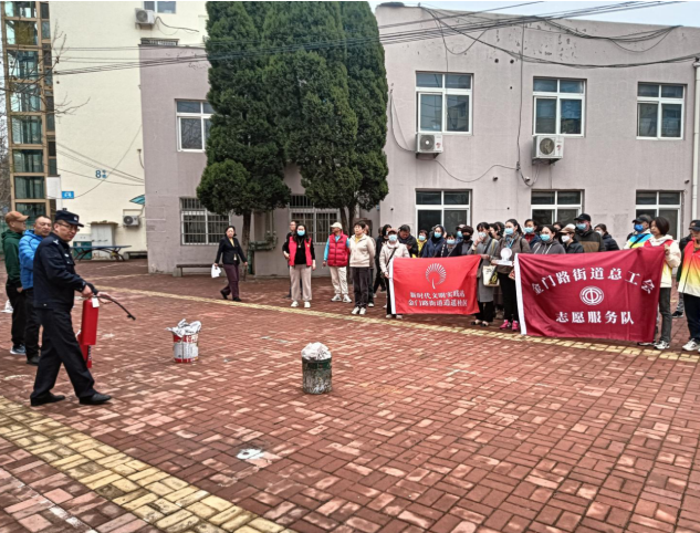 活动现场,金门路派出所赵新警官向居民和志愿者们普及了常见的安全隐患和排查重点,讲解了火灾应急处理和逃生技能,并示范正确使用灭火器的方法,之后居民和志愿者实操了灭火器材。