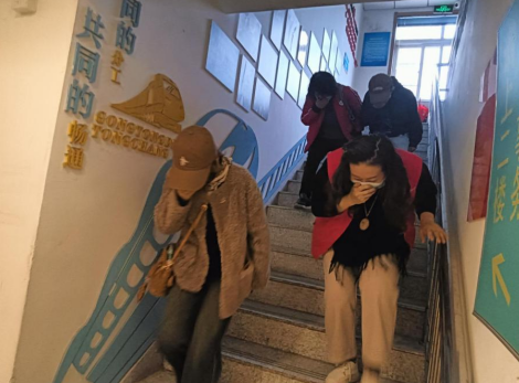 讲解结束后,社区工作人员和志愿者组成的演练小组,向在场的居民模拟火灾现场逃生演练,切实提高了居民在火灾发生时自救、互救、急救能力,得到了居民的好评。