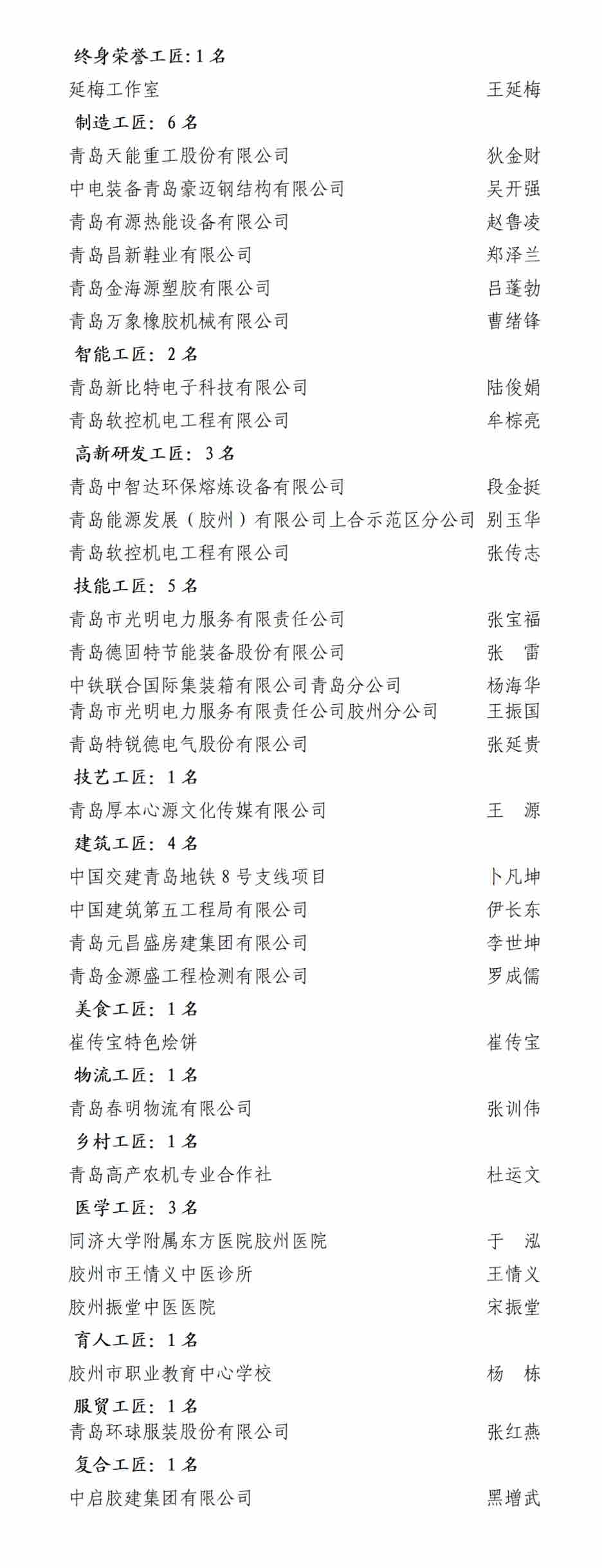 在他们之中,有为上合新区全域实现清洁能源供能的别玉华,有突破信息孤岛壁垒、实现胶州市城市云脑“一体贯通”的陆俊娟,有5年累计创销售额1.5亿元的赵鲁凌,有壁画作品被中国美术馆、中国人民革命军事博物馆展出收藏的王源,有总结出65类调试关键点、实现全流程防错、产品0缺陷流出的牟棕亮,有被誉为“胶州建筑一绝”、工程改进和技术革新已有十几项的李世坤……