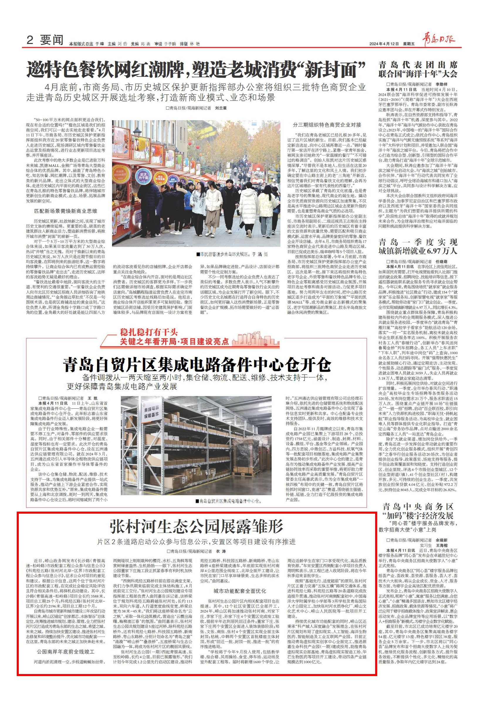 张村河生态公园片区内相关配套项目也在提速。其中,12个社区安置区已全部开工,2024年,崂山区将加速推动张村河南、刘家下庄、李家下庄、孙家下庄4个安置区完成竣工验收,提前半年达到居民回迁条件;董家下庄、张家下庄两个安置区全面进入装饰装修阶段;郑张、文张、南张、张村4个安置区实现全面主体封顶;枯桃、中韩两个安置区首批楼座主体封顶,形成“回迁一批、封顶一批、推进一批”的有序推进格局。